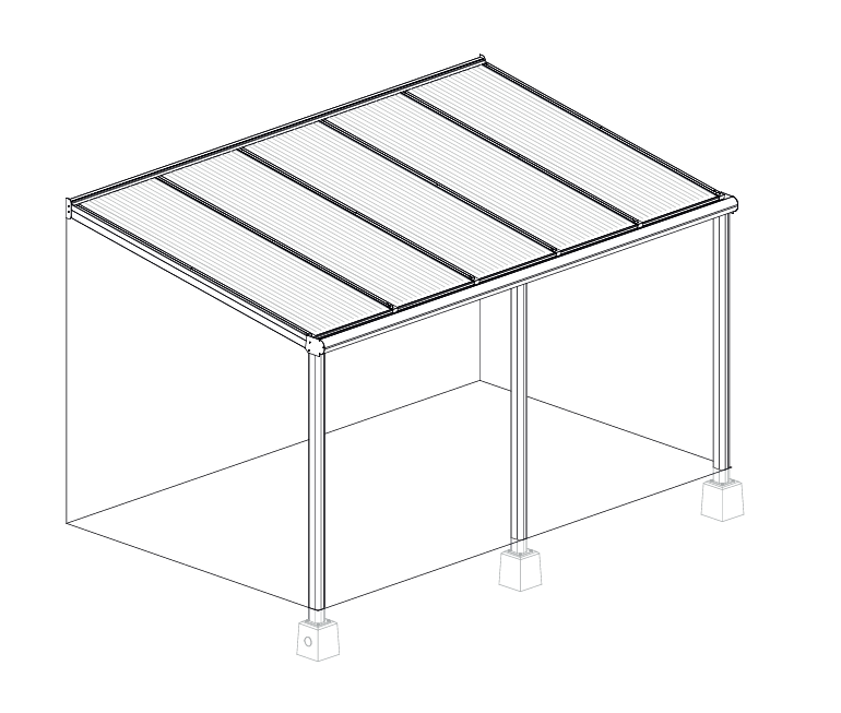 Montáž verandy Deponti Bosco probíhá postupným sestavením jednotlivých konstrukčních prvků, které do sebe přesně zapadají. Nejprve se kotví stěnový profil, následně se osazují sloupky, instaluje žlab a montují nosníky. Poté se ukládají polykarbonátové desky a doplňují krycí a těsnící prvky.