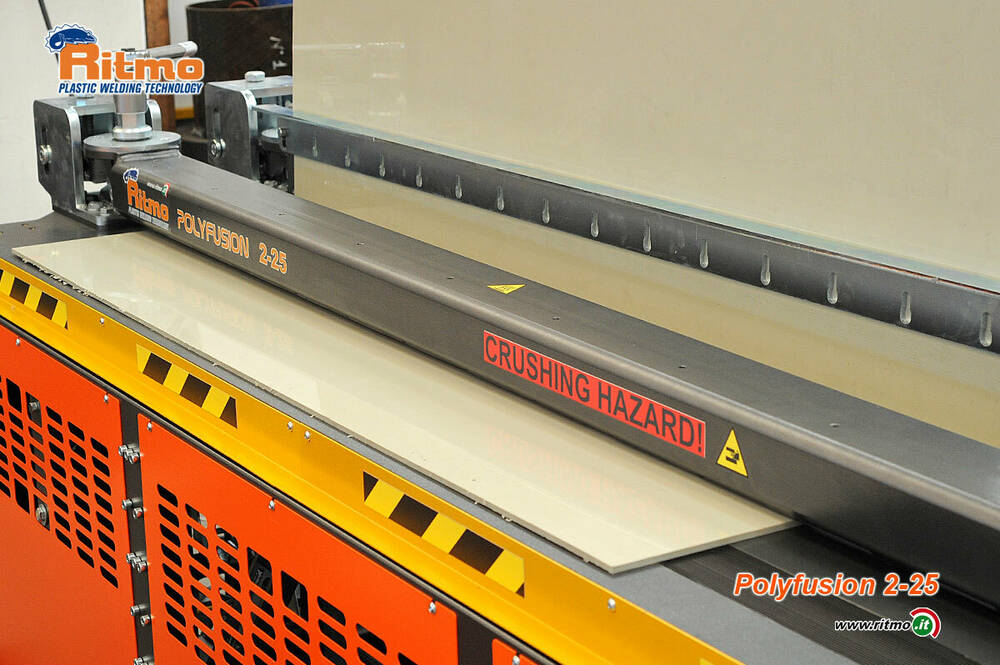 POLYFUSION 2-25 je hydraulická svářečka na HDPE a PP desky. Umožňuje svařovat desky do šířky 2 m a tloušťky 3 mm až 25 mm. Stroj dokáže svařovat i dvoustěnné desky.