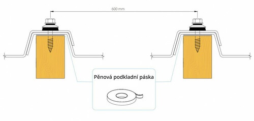 - vzdálenost vrutů je 500 mm