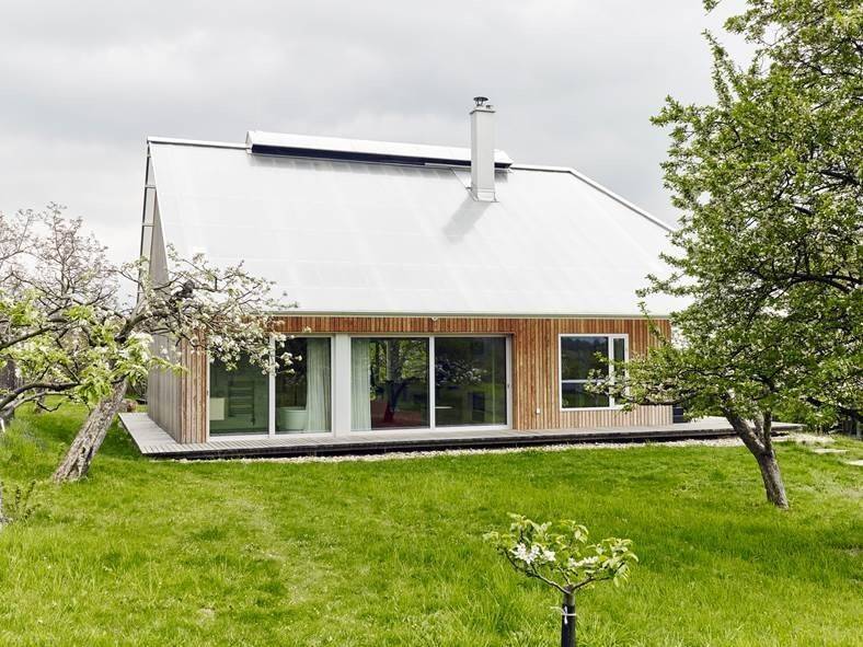 Zajímavá realizace rodinného domu se skleníkem v druhém patře. Zastřešení budovy je realizované pomocí našich panelů Rodeca. Konstrukce je často zmiňována v odborných článcích, kde se dozvíte více o stavbě.