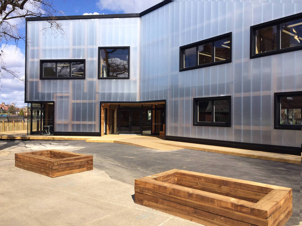 Desky Rodeca 40 mm se často používají pro fasádní pláště, kde je požadavek na přirozené osvětlení interiéru a zároveň na estetický vzhled. Panely jsou lehké, odolné vůči povětrnostním vlivům a lze je instalovat i na velké výšky bez nutnosti masivní nosné konstrukce.